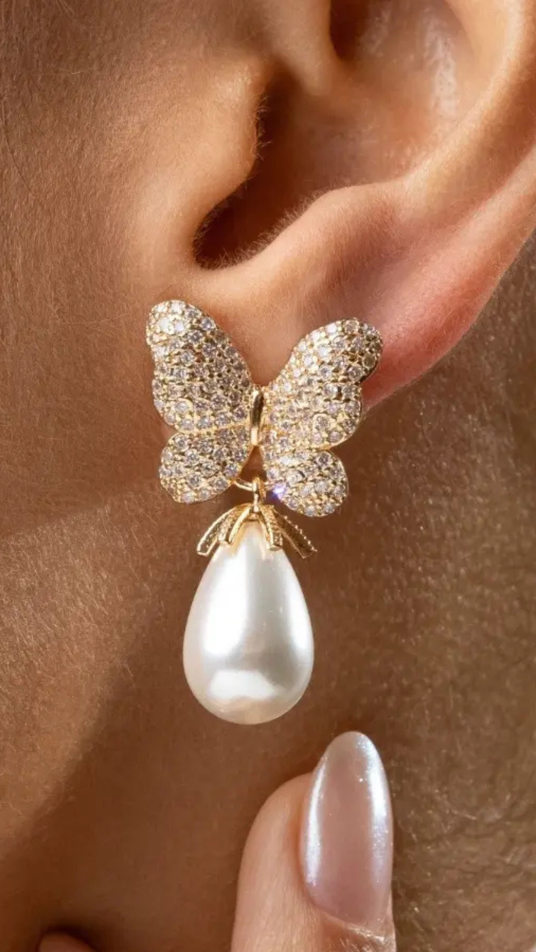 BRINCO BORBOLETA PEROLA ALONGADA